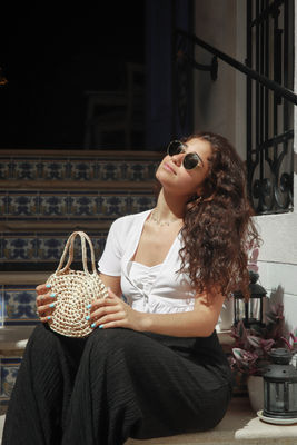 Um passeio mais cultural merece uma atenção especial à roupa que se vai vestir, a cor neutra da palma conjuga na perfeição com qualquer tom que se opte. Uma mala relógio de pegas é o acessório ideal para este look.